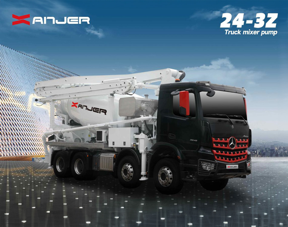 24 մ ուղղահայաց և 20 մ հորիզոնական հասանելիությամբ բետոնամղիչ՝ 32000 կգ ընդհանուր քաշով։