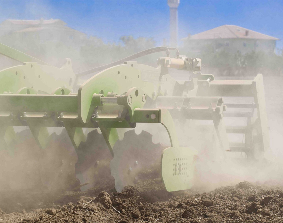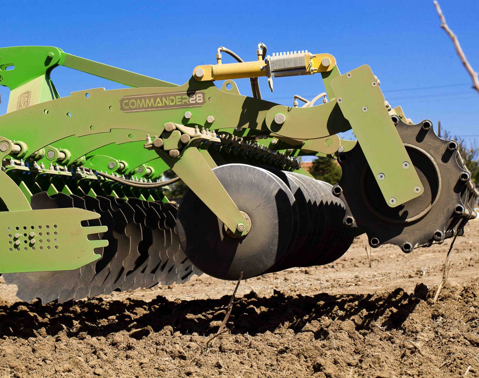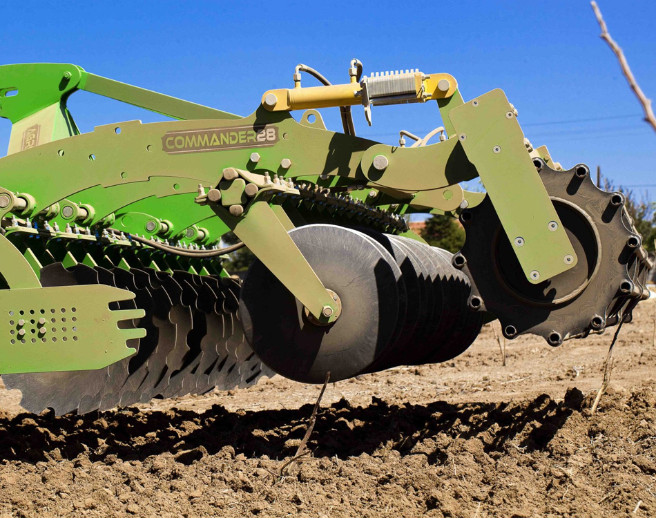 Один из последних продуктов нашей корпорации Commander Disc Tiller выполняет процедуры измельчения и перемешивания более эффективно, чем известные дисковые бороны благодаря независимой конструкции дисков и конструкции оборудовании. Каждый диск работает индивидуально благодаря подшипнику. Когда резиновые прокладки, которые находятся на каждом диске, застревают на препятствии, поломка и повреждения шасси устраняются из-за движений диска вперед-назад. На это меньше влияет шероховатость поверхности поля. Это практический не вредит выравниванию поля.