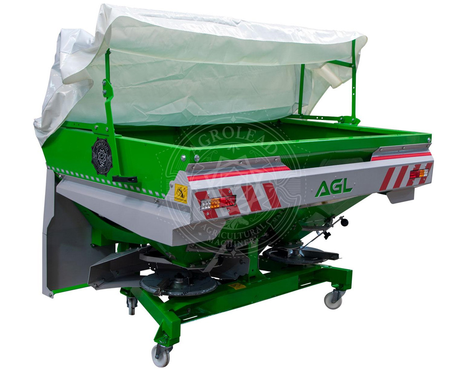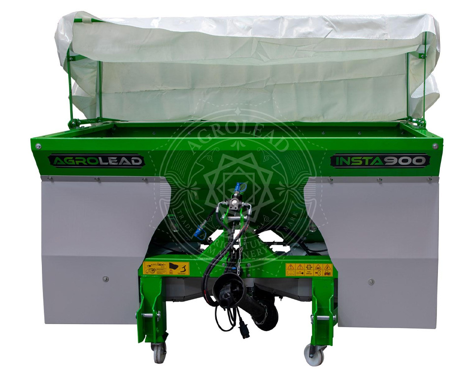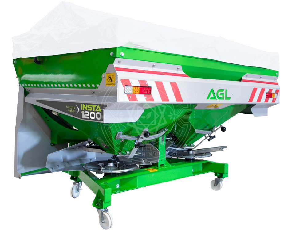 Разбрасыватели удобрении INSTA с двойным диском, изготовлены в виде трехточечной системы навески. Основной бункер составляет 900 литров, есть возможность увеличить объем данной техники до 3000 литров. Разбрасыватели изготавливаются с гидравлическим контроллером. Благодаря этой особенности в начале границы из кабины трактора удобрения легко и быстро разбрасываются, а также предотвращается ненужный расход удобрений. Резервуар для удобрений разделен на две части с противоположной V-образной перегородкой, которая находится под резервуаром, вал смесителя в резервуаре расположен в горизонтальном положении и вращается с малыми оборотами. Этот вал абсолютно не превращает удобрения в пыль. Таким образом, удобрение распределяется по полю более равномерно и плавно. Три различных варианта дисков адаптированы для этой техники. Ширина разбрасывания дисков 10-16 / 18-24 (стандарт) / 24-36 м. Настройки угла и длины крыла на диске необходимо изменить в соответствии с таблицей удобрений. Кроме того, рабочая ширина диска может быть ограничена с помощью нашего нового ОГРАНИЧИТЕЛЯ.
