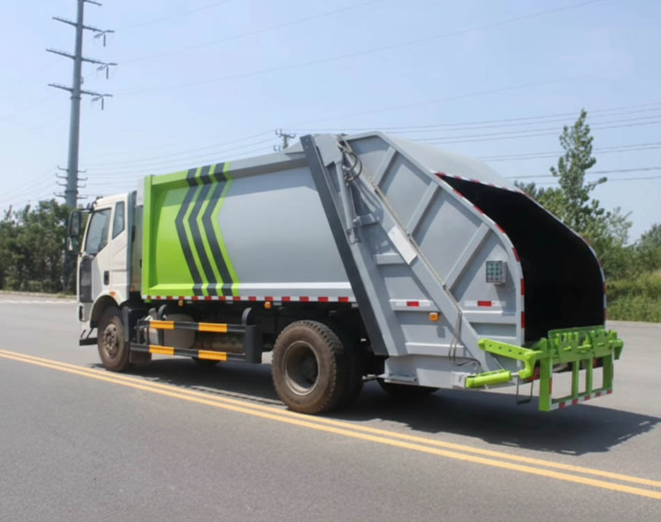 "Աղբաման՝ 15 խորանարդ մետր Բեռնման քաշը՝ 10-12 տոննա Տուփի նյութը՝ Q345 ածխածնային պողպատ, 5 մմ կողք, 5 մմ ներքև, Բեռնման եղանակները՝ հետևի հիդրավլիկ տակառի շրջադարձ, Բեռնման եղանակները՝ հիդրավլիկ դուրս մղում, Սեղմման հարաբերակցություն՝ 0.6-ից 0.75 տոննա/խորանարդ մետր Հիդրավլիկ համակարգի անվանական ճնշումը՝ 16 ՄՊա Բեռնման համակարգի լցման ժամանակը. 8-10 վրկ Բեռնման համակարգի աշխատանքային ցիկլը՝ 50- 60 վրկ Բեռնաթափման համակարգի աշխատանքային ցիկլը՝ 30-40 վրկ Կառավարման համակարգ՝ PLC և ձեռքով հիդրավլիկ համակարգ Գունավորում՝ փոշեպատում թխվածքաբլիթով, գույնը և լոգոն՝ ըստ հաճախորդի պահանջի։ Շրջադարձման բեռը՝ 700 կգ Բարձրացնող սարքը կարող է բավարարել՝ 120 լ, 240 լ, 420 լ, 660 լ, 1100 լ" Eaton ապրանքանիշի ճիրան, բազմաֆունկցիոնալ ղեկ, բոլոր WABCO փականները, առջևի 10 և հետևի 12+9 տերևային զսպանակներ, 300 լիտր ալյումինե վառելիքի բաք, ալյումինե համաձուլվածքից օդային բաք, միջին նստատեղ, կենտրոնական փական, Camel ապրանքանիշի 150Ah մարտկոց, ABS, օդափոխվող և տաքացվող նստատեղեր (գոտկային հենակ, բազկակալ), արտահանված բեռնատարի մոդել |